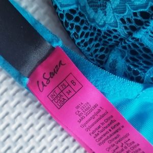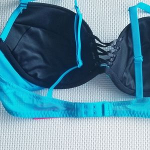The Show Off push up bra. Black with bright blue lace. The push up pads can be removed. New, without tags.