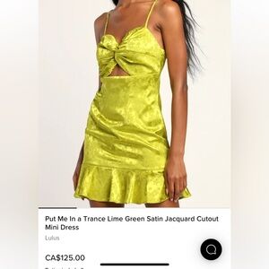 No one will be able to take their eyes off of you in the Lulus Put Me In a Trance Lime Green Satin Jacquard Cutout Mini Dress! Woven satin jacquard shapes a twist-front bodice with a flirty cutout at the center, a sweetheart neckline, and adjustable spaghetti straps. The fitted waist sits atop a mini skirt with a tiered, ruffle hem. Hidden back zipper/clasp.