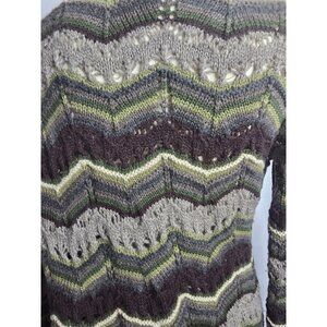 Putumayo 100% Wool Open Knit Cardigan Striped Multicolor Women's Size Small Boho