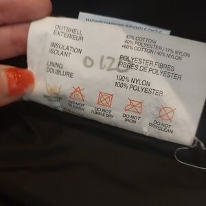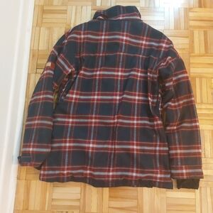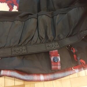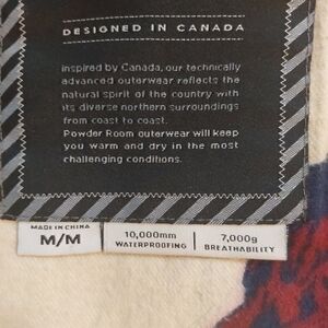 Pwdr room women ski/snowboard jacket size M , hood is missing. have some pilling on outside and areas for hands. 10,000mm waterproofing. 7,000g breathability. armpit to armpit is 21", length is 29", length of sleeve from shoulder is 26.5"