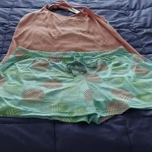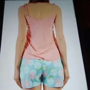 NWT This comfy pyjama set includes a sleeveless top with text print printed boxer shorts.Regular fit.Spaghetti straps,elastic waist.Top about 26" from shoulder to hem.Inseam,about 3.5".Size M