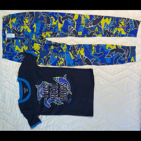 Good used condition snug fit pj sets in navy/blue colours with print.