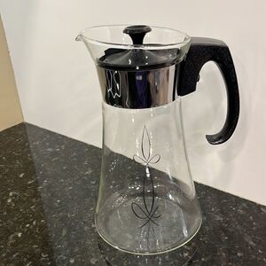 Pyrex 6 cups Coffee Pot Carafe Silver design Mid Century Glassware Vinta…