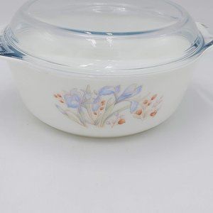 Pyrex Blue Iris Casserole Dish with Lid 8 Inches in Diameter Vintage Cookware