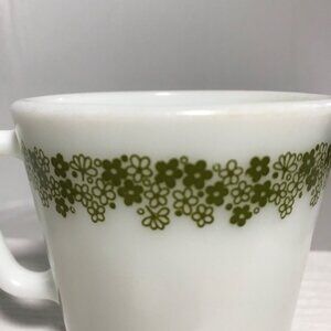 Pyrex Coffee Mug Crazy Daisy Green Floral Milk Glass Vtg 3.5" Pick Quantity MCM
