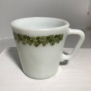 Vintage Pyrex coffee mug with a charming Crazy Daisy green floral pattern. Perfect for collectors or everyday use. Features durable milk glass construction, ideal for hot beverages. Choose your desired quantity.