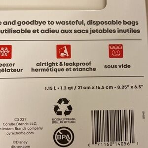 Pyrex Disney Mickey Mouse Reusable Platinum Silicone Storage Bag - Sandwich Size (New)