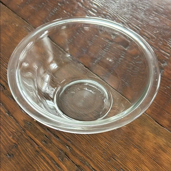 Pyrex 1 qt mixing bowl. Flat rim. Oven, microwave and refrigerator safe. Made in USA. Very good condition. No cracks or chips.