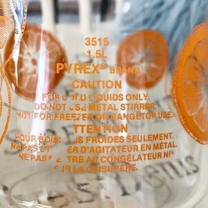 Pyrex, Orange Juice, Glass, Pitcher, Juice Container, I.5 L, Vintage