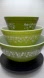 Pyrex Spring Blossoms Crazy Daisy Mixing Bowls Set of 3 Green 401, 402, 403.