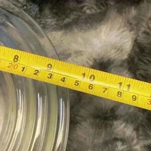 Awesome Find!!! Made in the USA Set of vintage Pyrex clear glass mixing bowls #322/1 litre, #323/1.5 Litres, #325/2.5 Litres. In very good condition, used but minimal scratches., as to be expected for MCM items age. The painted blue ribbons/flowers details are still a vibrant blue. Colonial mist design. No chips. Sold as a set.