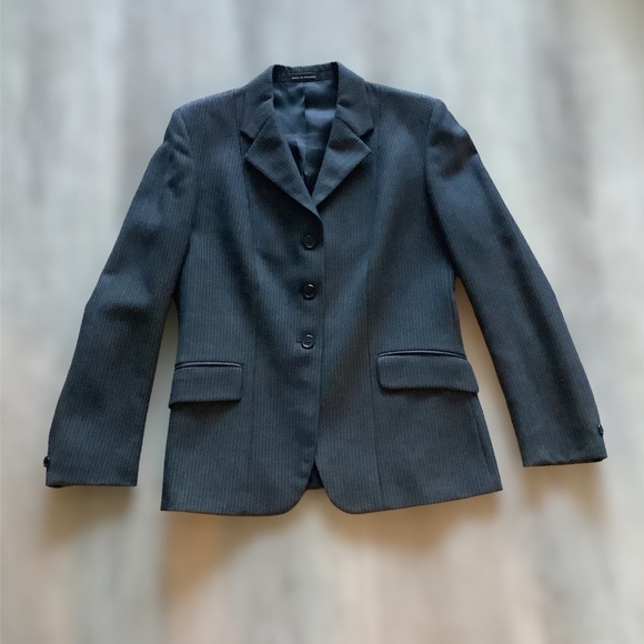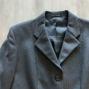 Beautiful tailored Pytchley Jacket. 100% Wool. With Viscose lining. Charcoal gray with lighter gray pinstripes. Lightly padded shoulders. Vented flap in the back. In excellent condition.