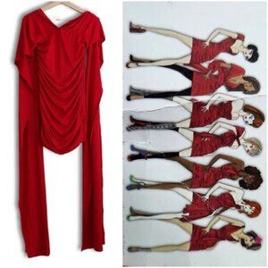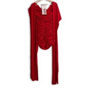 • Strapless ruched stretch bodycon tube dress in red with long stretchy wide straps to convert it into halted top, wrap etc.