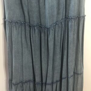 QED LONDON Strapless Smocked Chambray Maxi Dress