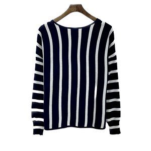 QED LONDON Stripe Navy Blue Sweater V-neck Size M NWT