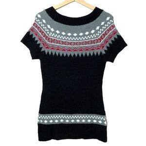 QED LONDON Viscose Mohair Short Sleeve Fair Isle Sweater - Size S