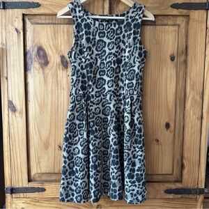 QED London Leopard Print Fit and Flare Mini Dress Sleeveless Beige Grey - M