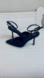 QIY BLACK FAUX SEUDE POINTED TOE HIGH HEEL SHOE ANKLE STRAP PADDED FOOTBED
