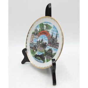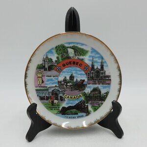 QUEBEC Canada Souvenir Plate Gold Rim and Scenic Landmarks Design Vintage