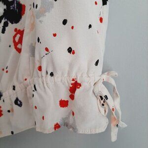 QUICKSILVER 100% Silk Tie Belt Hem Tank Top Ruffle Detail Abstract Sz S