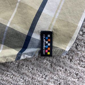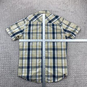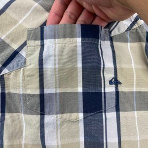 QUIKSILVER Shirt Men Medium M Beige Blue White Plaid Button Up Surf Surfing MENS