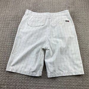QUIKSILVER Shorts Men 34 White Blue Brown Plaid Short Pants Chino Casual Golf