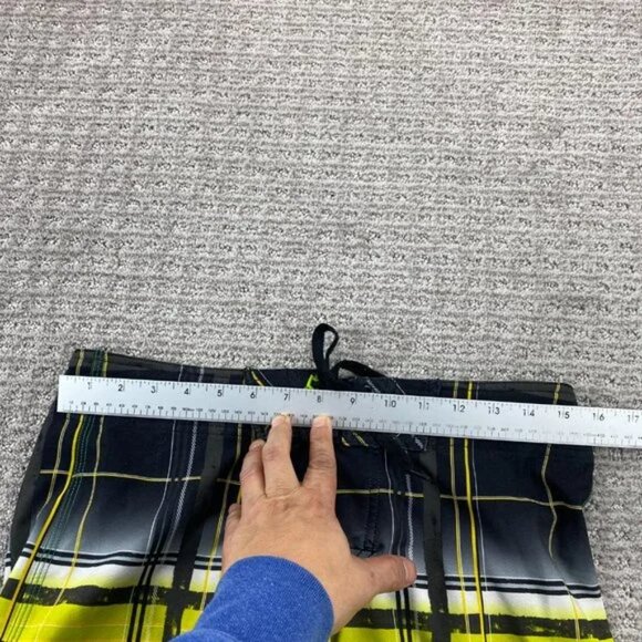 QUIKSILVER Swim Trunks Men 30 Gray Yellow Green Plaid Bathing Suit Board Shorts