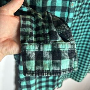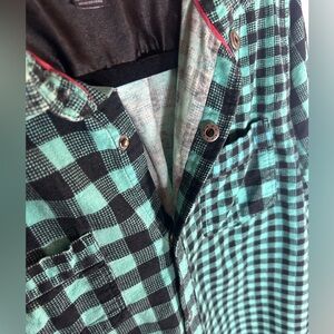 QUIKSILVER size S men’s button snap down shirt, long sleeve, teal color, pockets