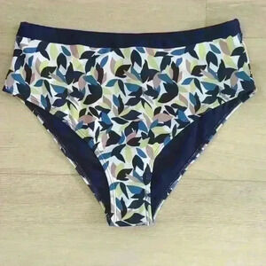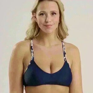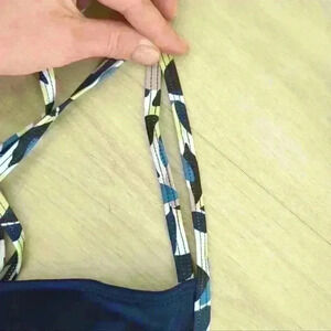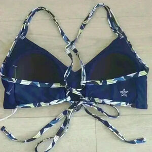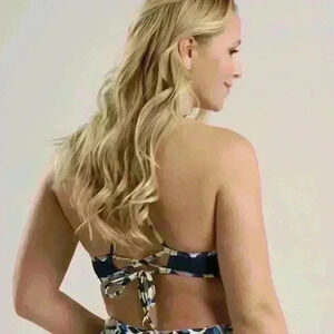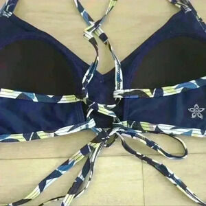 • Style: Bottoms High Rise, medium coverage, abstract pattern with navy waist band, Top has crossback adjustable straps, built in lined cups, tie up back