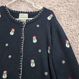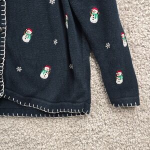 Quacker Factory Cardigan Women Medium Blue Christmas Snowman Holiday Sweater