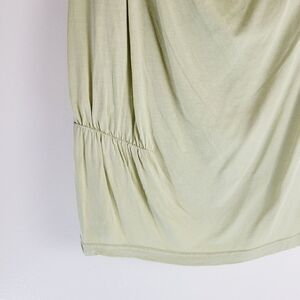 Nicole Bridger light sage green sleeveless top. Gather detail to one side in classic Bridger asymetric style. Care label is removed so I can't guarantee but I'm sure like many of her other garments this is 100% organic cotton jersey. Surplus plunge neckline and there is a built in bust layer for a little extra support. Not padded or wired.