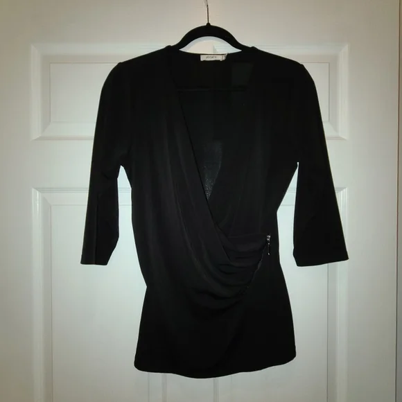 Thicker material blouse from Ricki's. Worn less than a handful of times. Quarter sleeve. Black. Size medium.