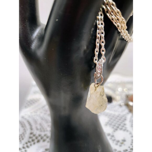 Quartz Gemstone Necklace Clear Quartz Pendant Faux Silver Chain Spiritual