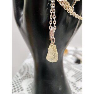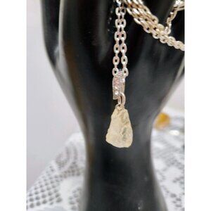Clear Quartz Crystal Necklace Faux Silver Chain 18 inch Chain with a silver tone rhinestone bail!