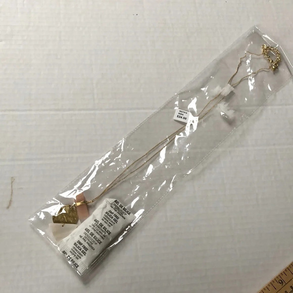 Approx 15” long but likely longer due to packaging size, the necklace doesn’t sit fully extended.