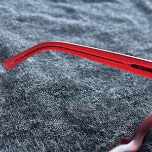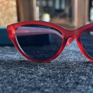 A bold, collectible pair from Quay Australia, the Rizzo is one of the brand’s most iconic cat-eye designs, known for its sculpted silhouette, translucent red frame, and deep UV-protective lenses. This like-new pair remains crisp in shape and clarity, with no visible wear to the acetate or lenses. The vibrant red colourway is long discontinued and especially sought after. Included is a brand-new protective case and cleaning cloth (non-original). A sharp, lightweight statement piece from one of the most recognizable names in contemporary eyewear.
