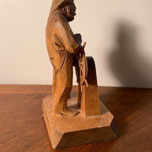 Quebec Caron carved wood carving, Man at ships wheel. 8" 50s