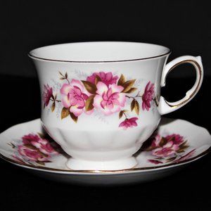 Queen Anne Pink Floral Teacup Set | Ridgway Potteries Vintage Tea Cup & Saucer
