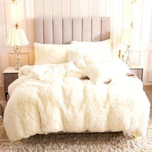 ๐ Queen Comfy Plush Shaggy Duvet Cover Luxury Super Soft Velvet Bedding w Shams