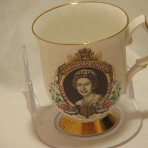 This is a Canadian Superior Fine Bone China cup commemorating Queen Elizabeth's 25 years of reign. Pics show both sides of cup.