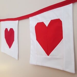 Each banner features three heart-shaped patchwork pieces sewn with care, incorporating beautiful vintage fabrics for that one-of-a-kind touch. 🌸