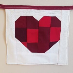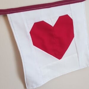 Queen Of Hearts Home Decor Banner 3 Heart Quilted Patchwork Handmade