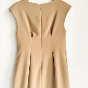 The classic camel beige color makes it easy to match with any accessories, while the sheath style adds a touch of sophistication to your look. The dress is a size M and is perfect for any regular-sized woman.