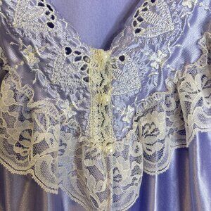 Queentex Vintage Purple Satin Lace Robe Women’s L Long Sleeve Bridal Housecoat