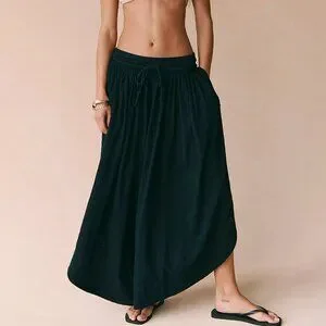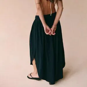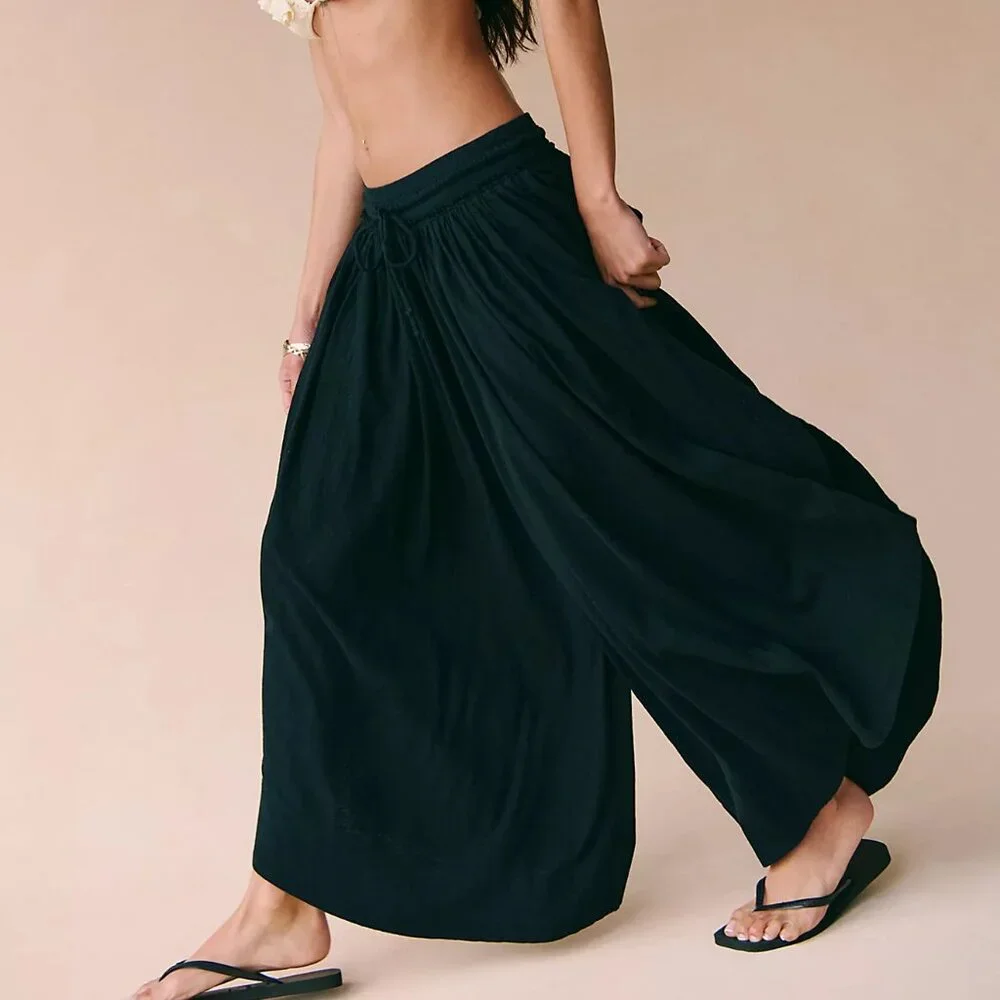 So comfy in the softest cotton jersey, these ultra wide-leg pants from free-est feature a rounded hem and split sides for the perfect billowy pair. Color is Aged Black. Size M. New!
