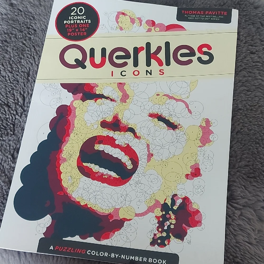 Querklies Icons puzzling color-by-number book. Bold multicolor pop-art cover with . Fun art activity. Great for gifting or creative projects. great for the icons art collector of icons from the past. new
