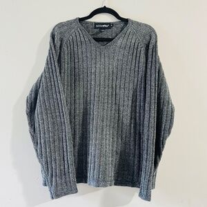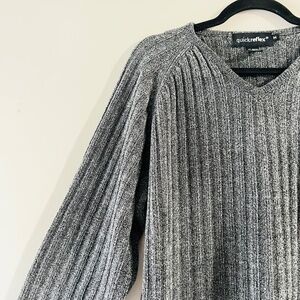 QUICK REFLEX Long Sleeve V Neck Y2K Ribbed Grey Sweater Medium