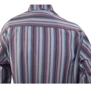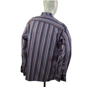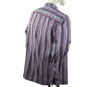 Quickreflex Men sz Large Dress Shirts Vertical Stripes 100% Cotton Purple