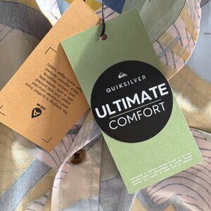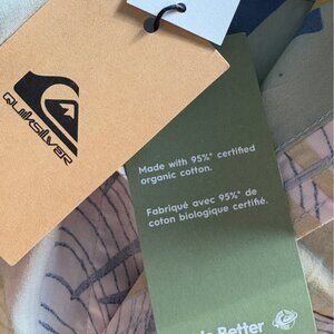Classic Quicksilver short sleeve shirt — tags still on, never worn! Men's size Large. Beach and surf vibe. Beautifully constructed. 95% certified organic cotton. Fun pattern. Great for the beach, or a BBQ, or relaxing on the weekend.