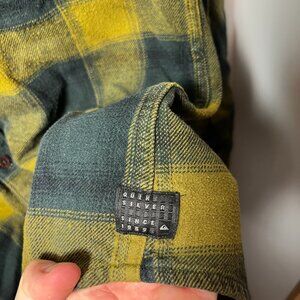 Quicksilver Flanel shirt black and brown plaid pattern. Good used condition. Some piling.